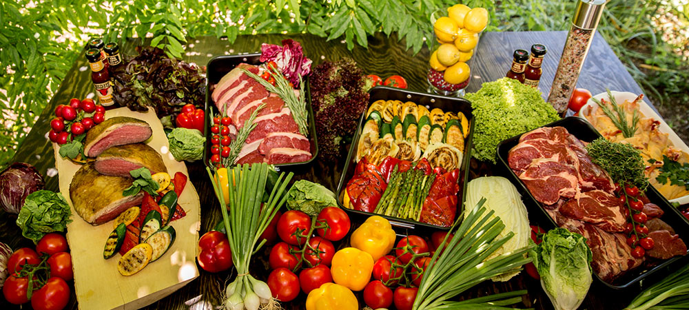 Buffetbestellung entspricht 300g Salat, 300g Grillgut, 200g Beilagen